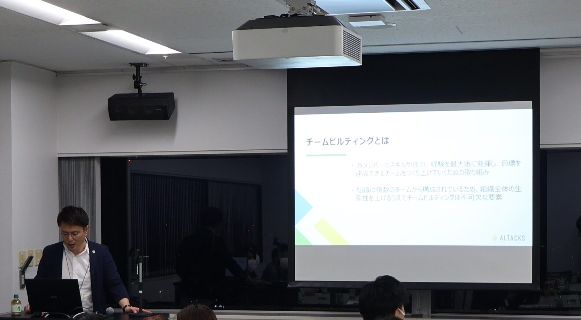 休憩をはさみ、後半は「チームビルディング研修」を行いました。